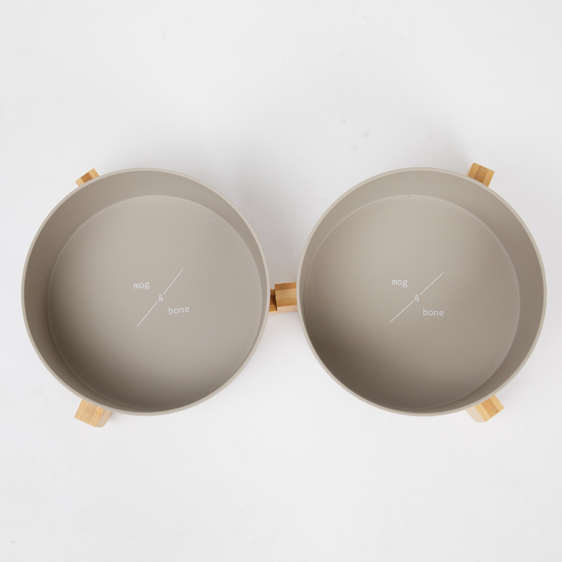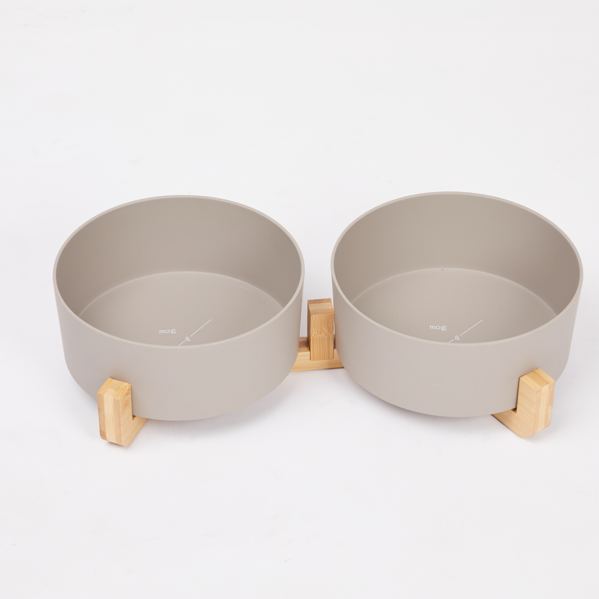 Bamboo Dog Bowls - Double with Stand - Mocha