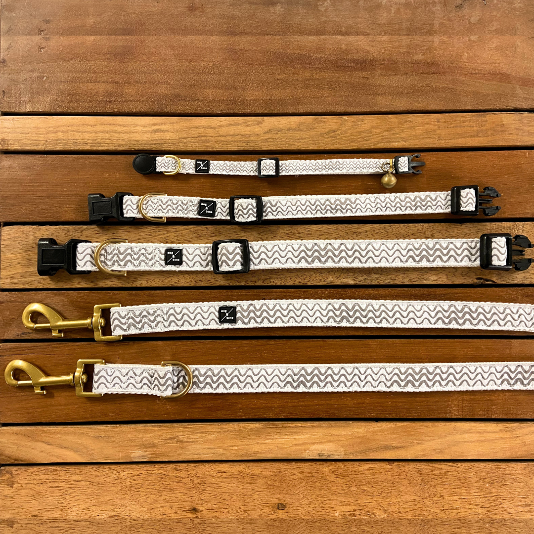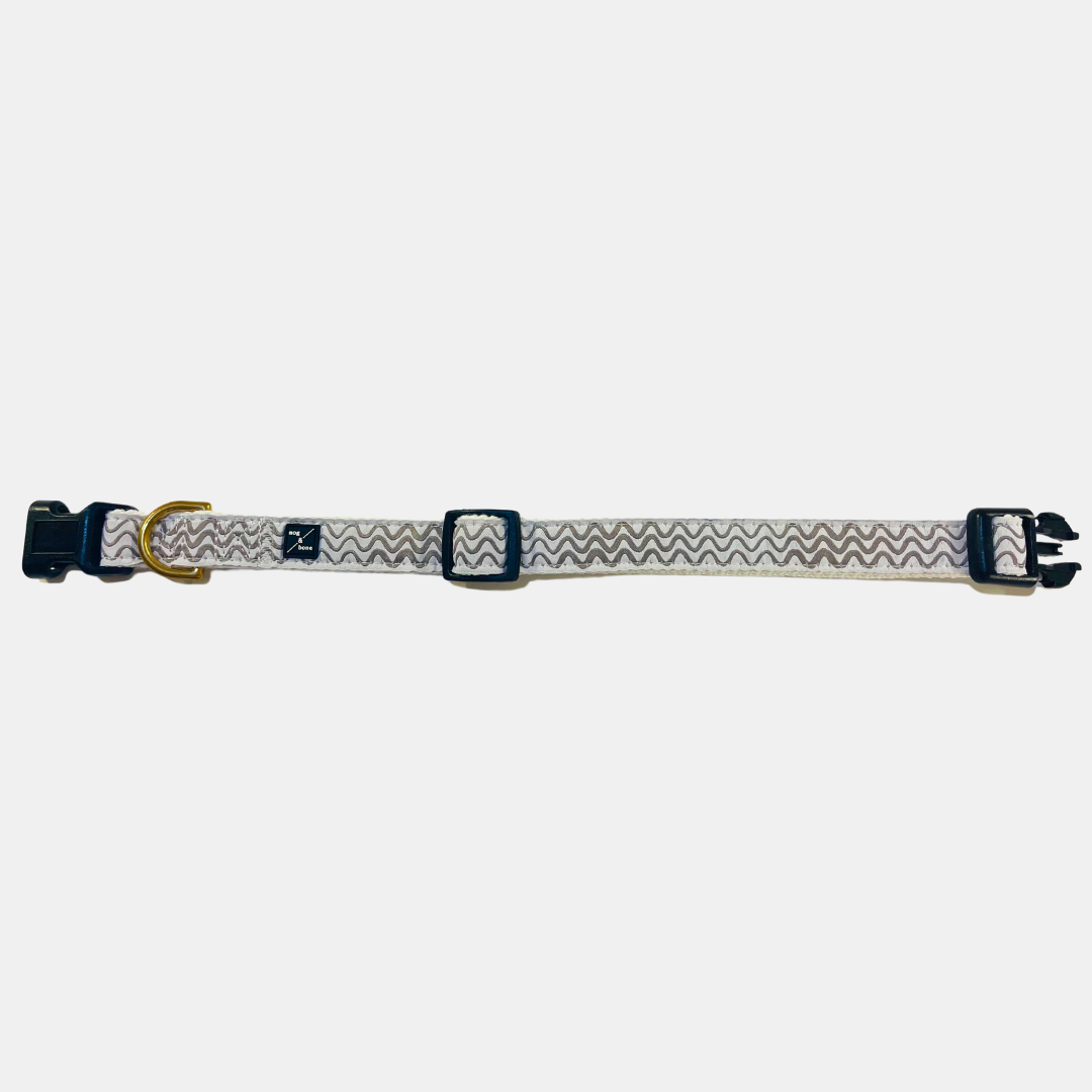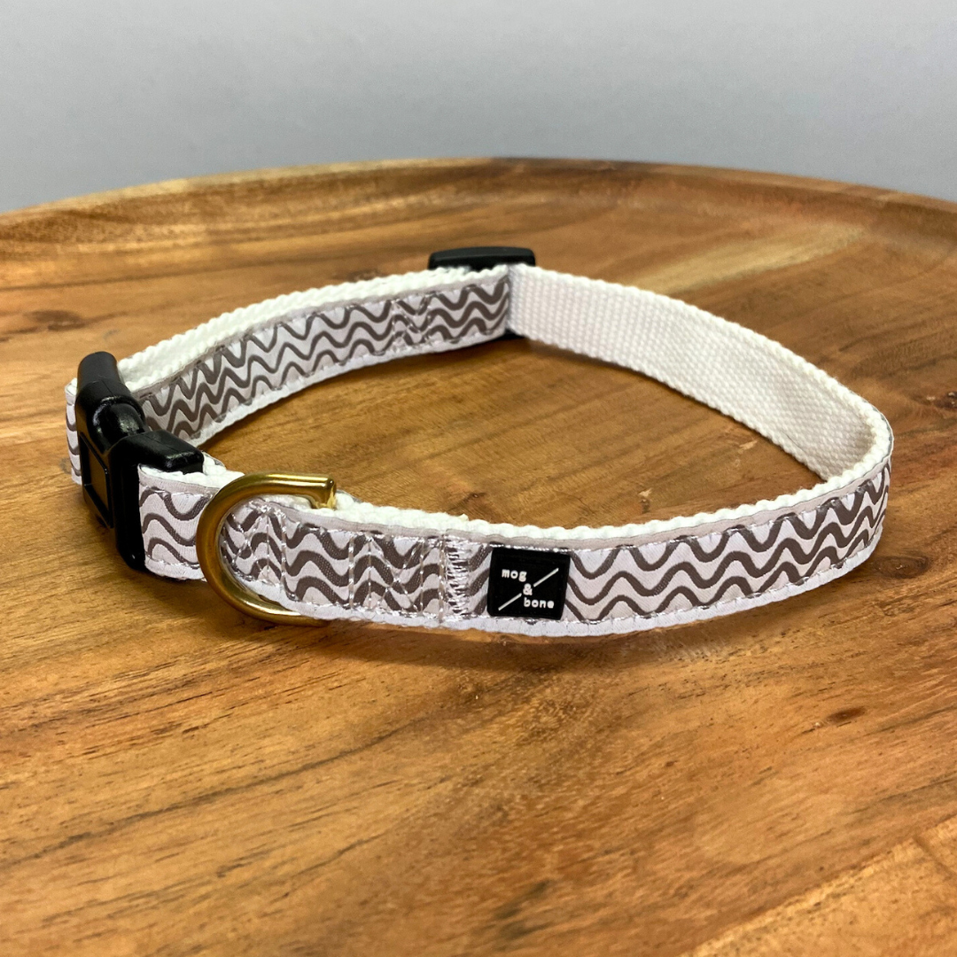 Hemp Dog Collar - Mocha Wave Print