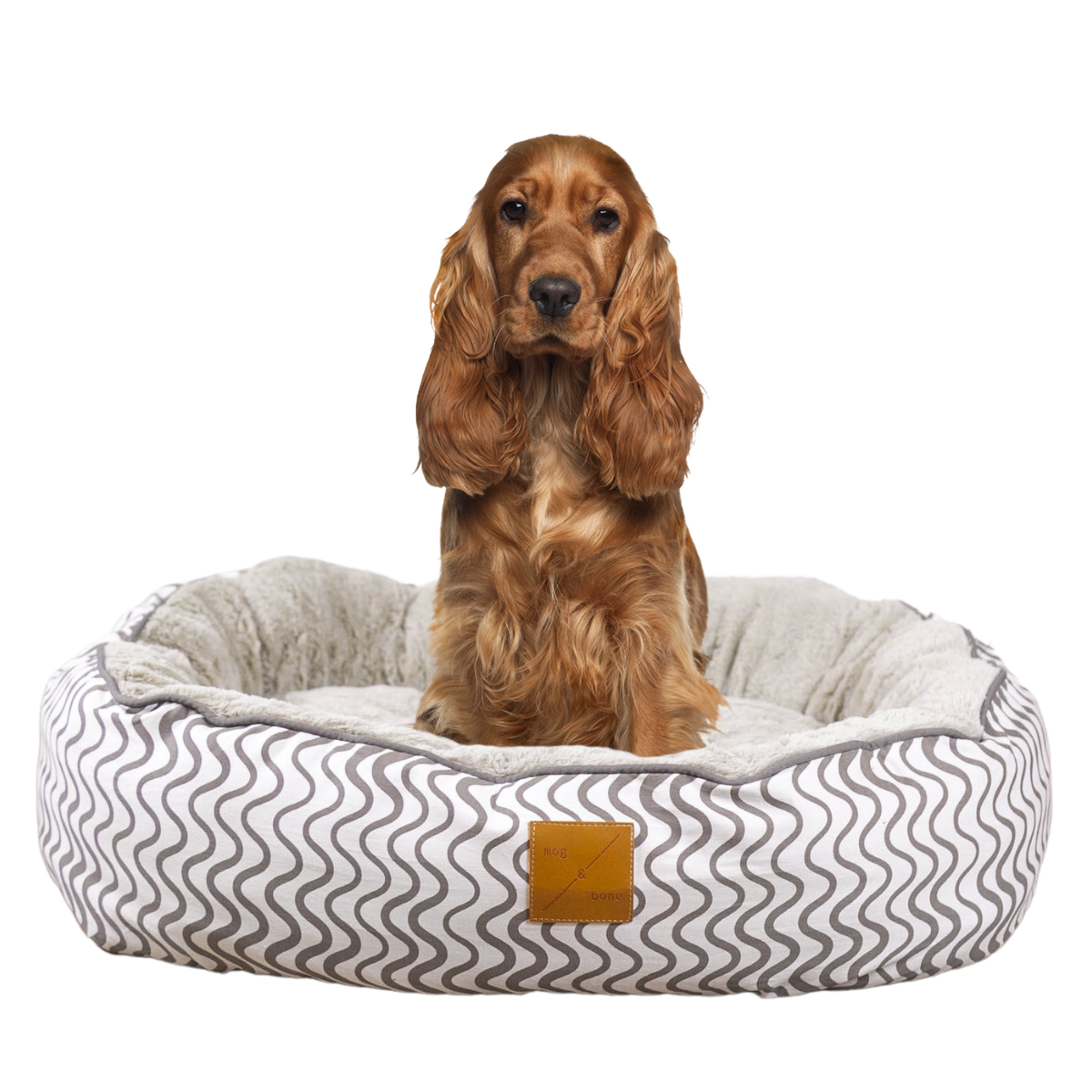 4 Seasons Reversible Circular Dog Bed - Mocha Wave Print