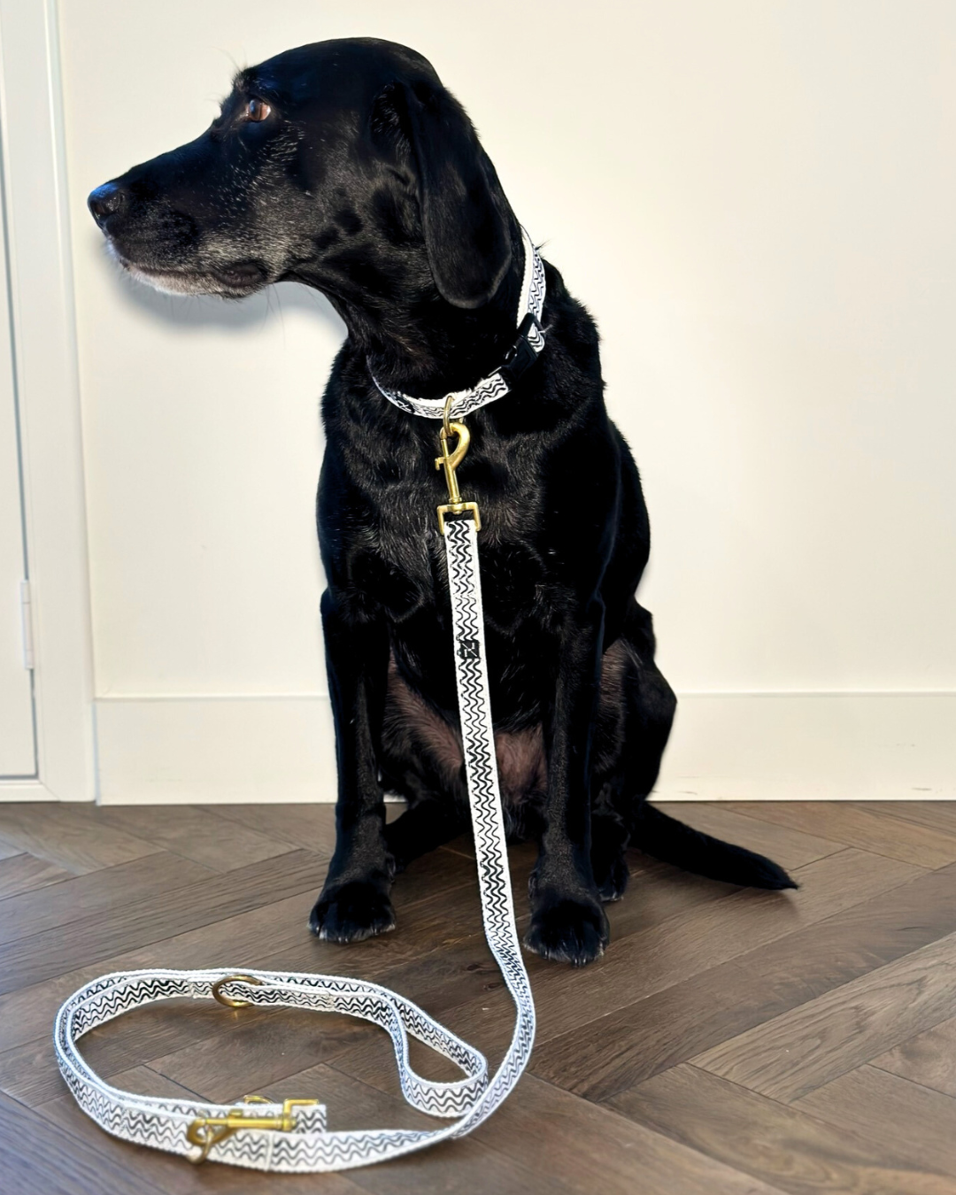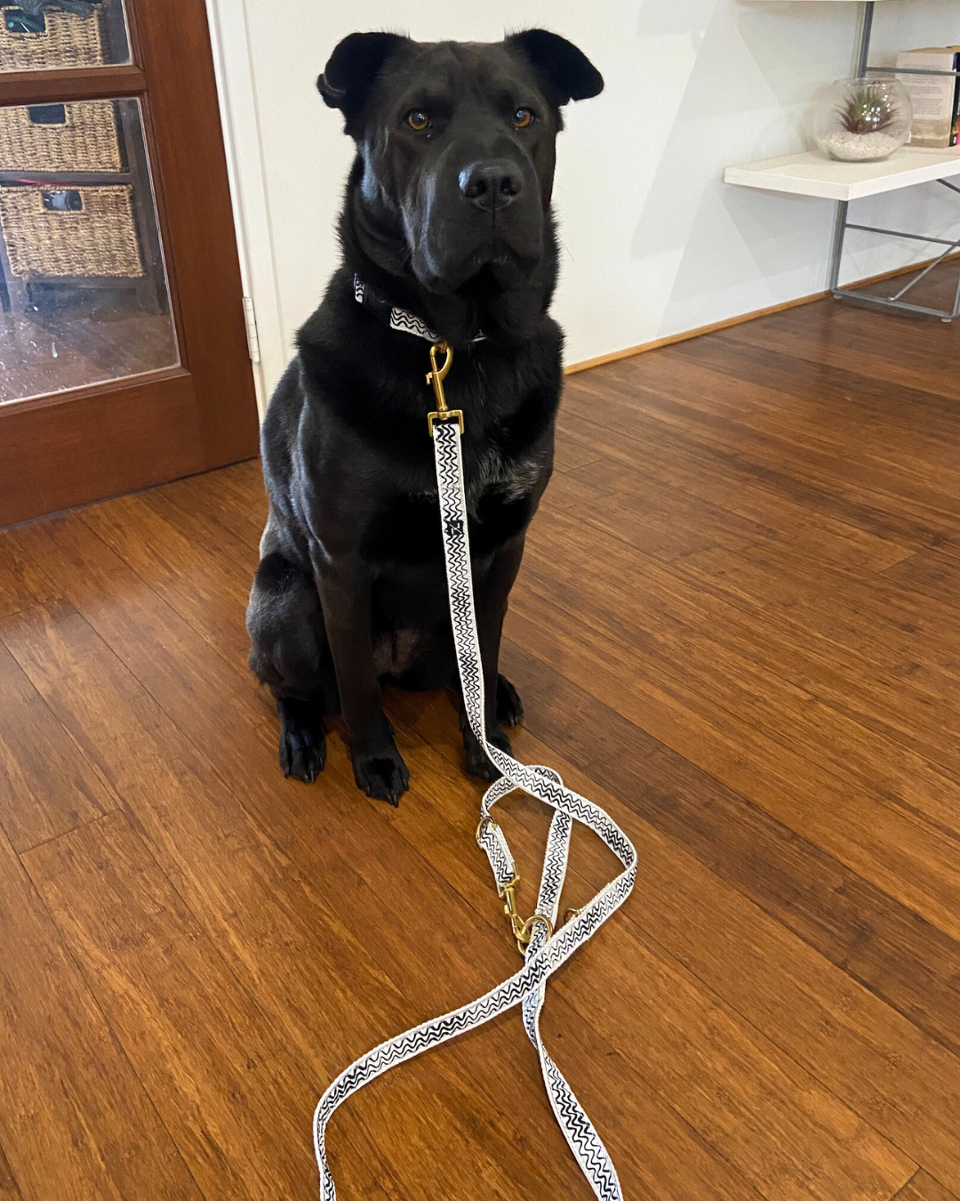 Hemp Dog Lead - Multi Function with Leather & Brass Fittings - Black Wave