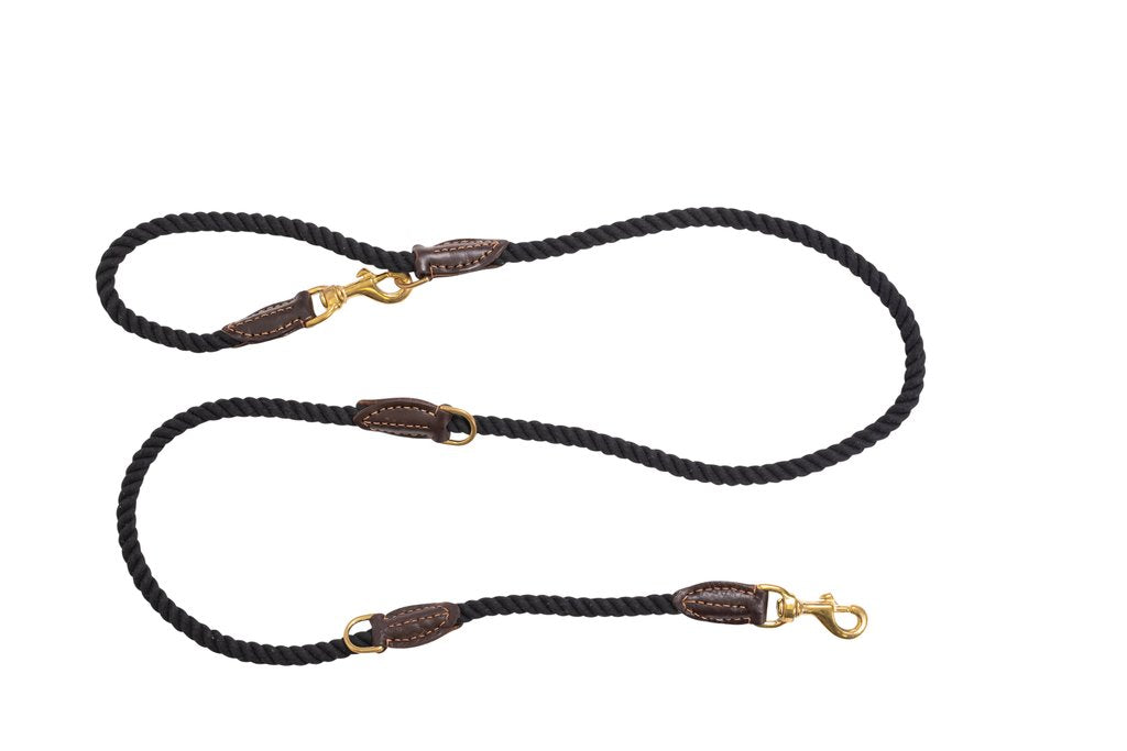 Rope Dog Lead (1.8m) - Multi Function with Leather & Brass Fittings - Black