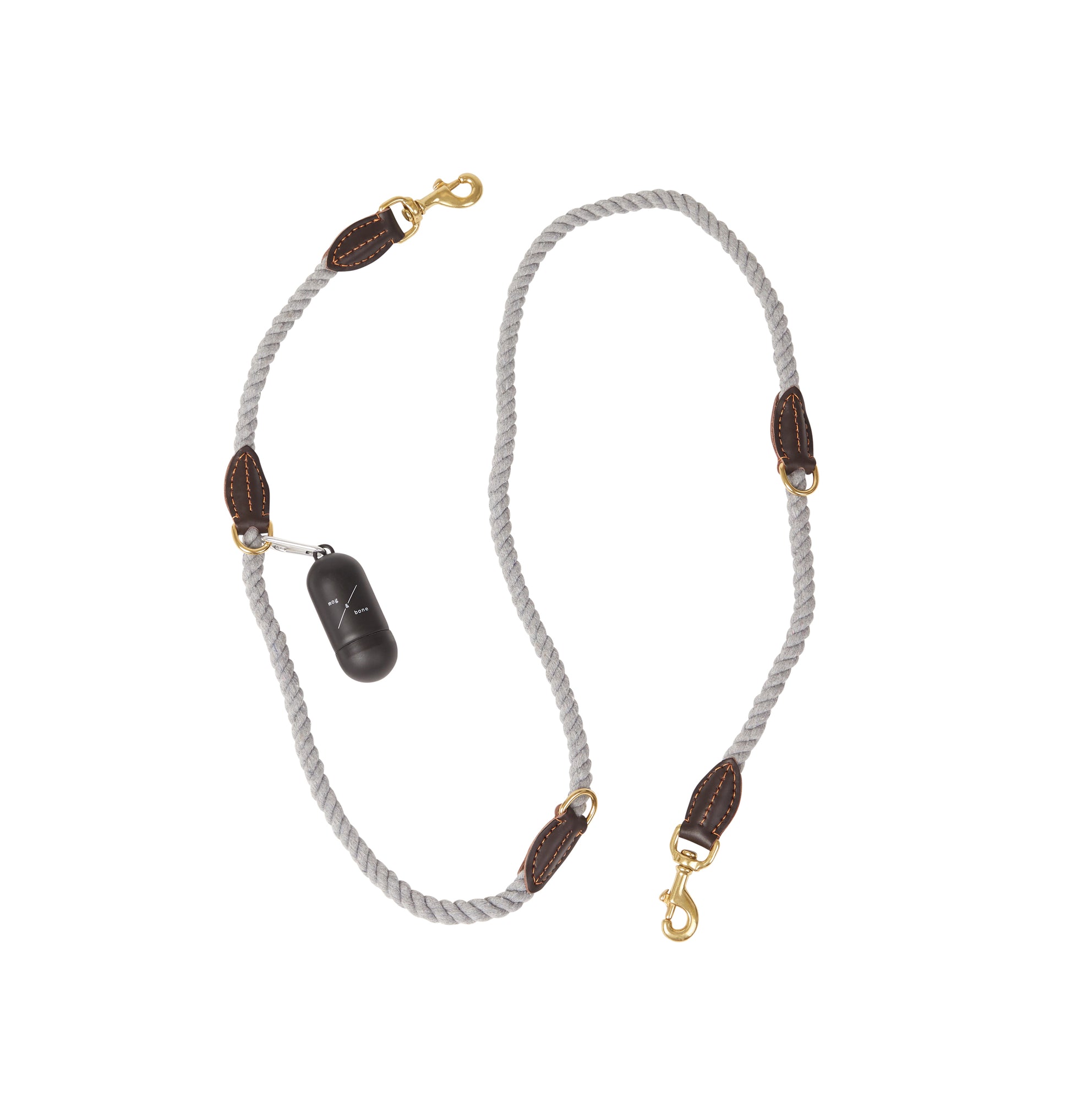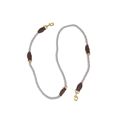 Rope Dog Lead (1.8m) - Multi Function with Leather & Brass Fittings - Grey
